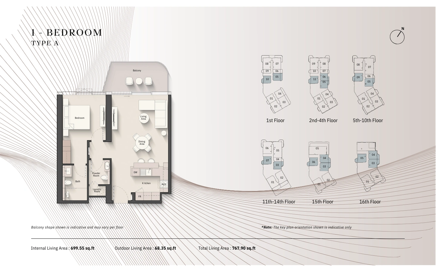Az 1 hálószobás elrendezések a kényelmet és a kifinomultságot ötvözik, tágas nappali–étkező terekkel, jól felszerelt konyhával és nyugodt, privát hálószobával. A nagy erkélyek tovább bővítik az életteret, természetes fényt és vízparti látványt biztosítva. Kiváló választás saját használatra és hosszú távú befektetésre is.