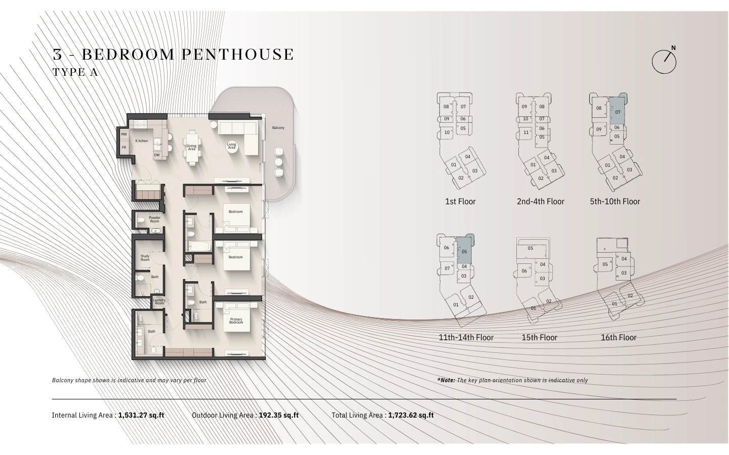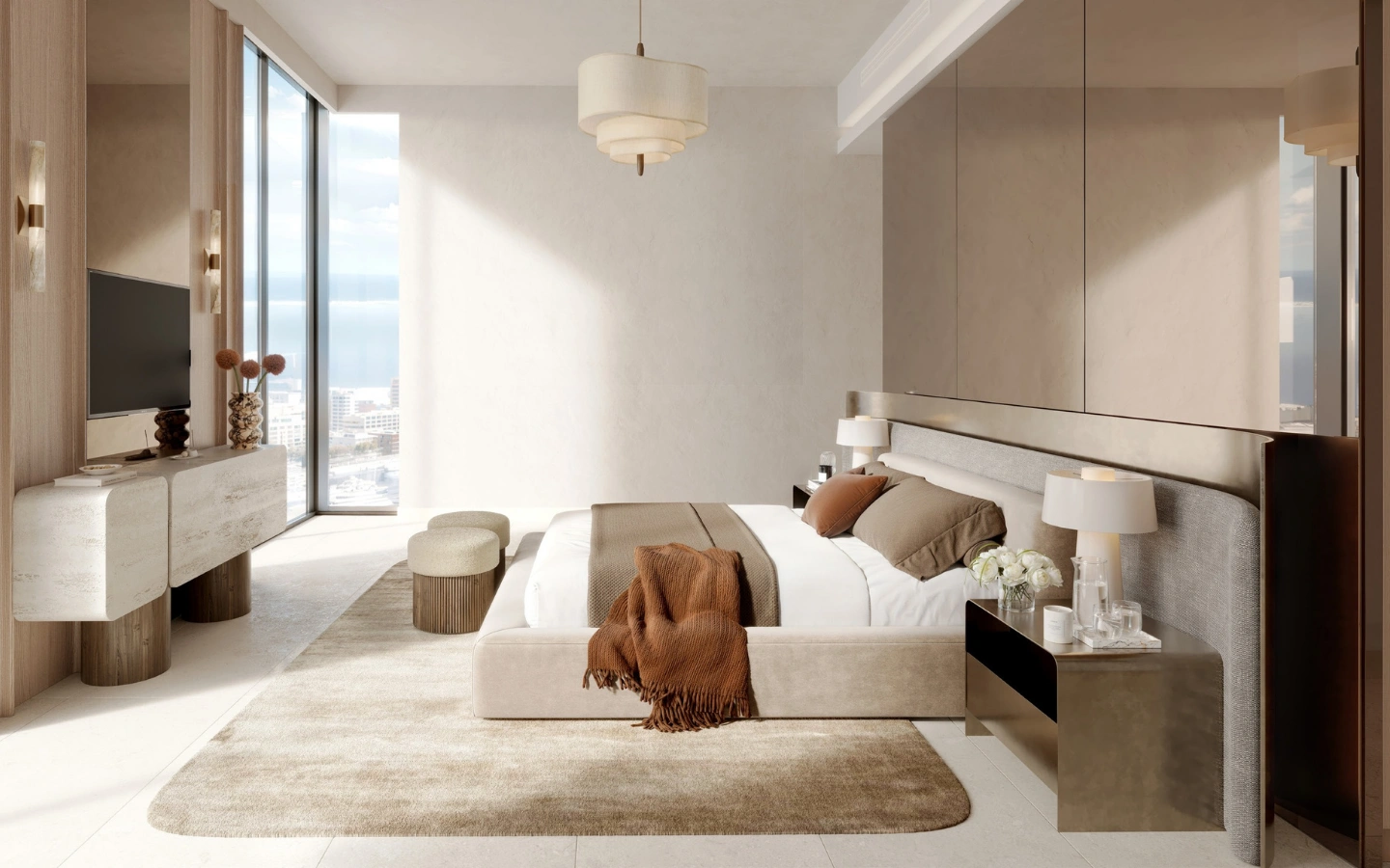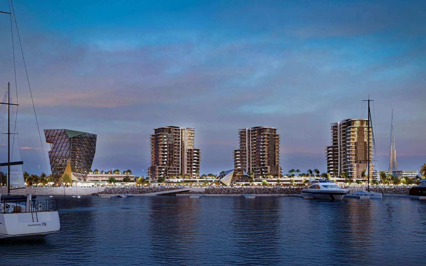 A 3 hálószobás rezidenciák kifinomult térérzetet és magas szintű privát szférát nyújtanak, tágas nappali–étkező terekkel, több saját fürdőszobás hálószobával és széles, marinára néző erkélyekkel. Ideális választás családok és prémium bérlők számára, ahol az elegancia, a funkcionalitás és a vízparti presztízs találkozik.