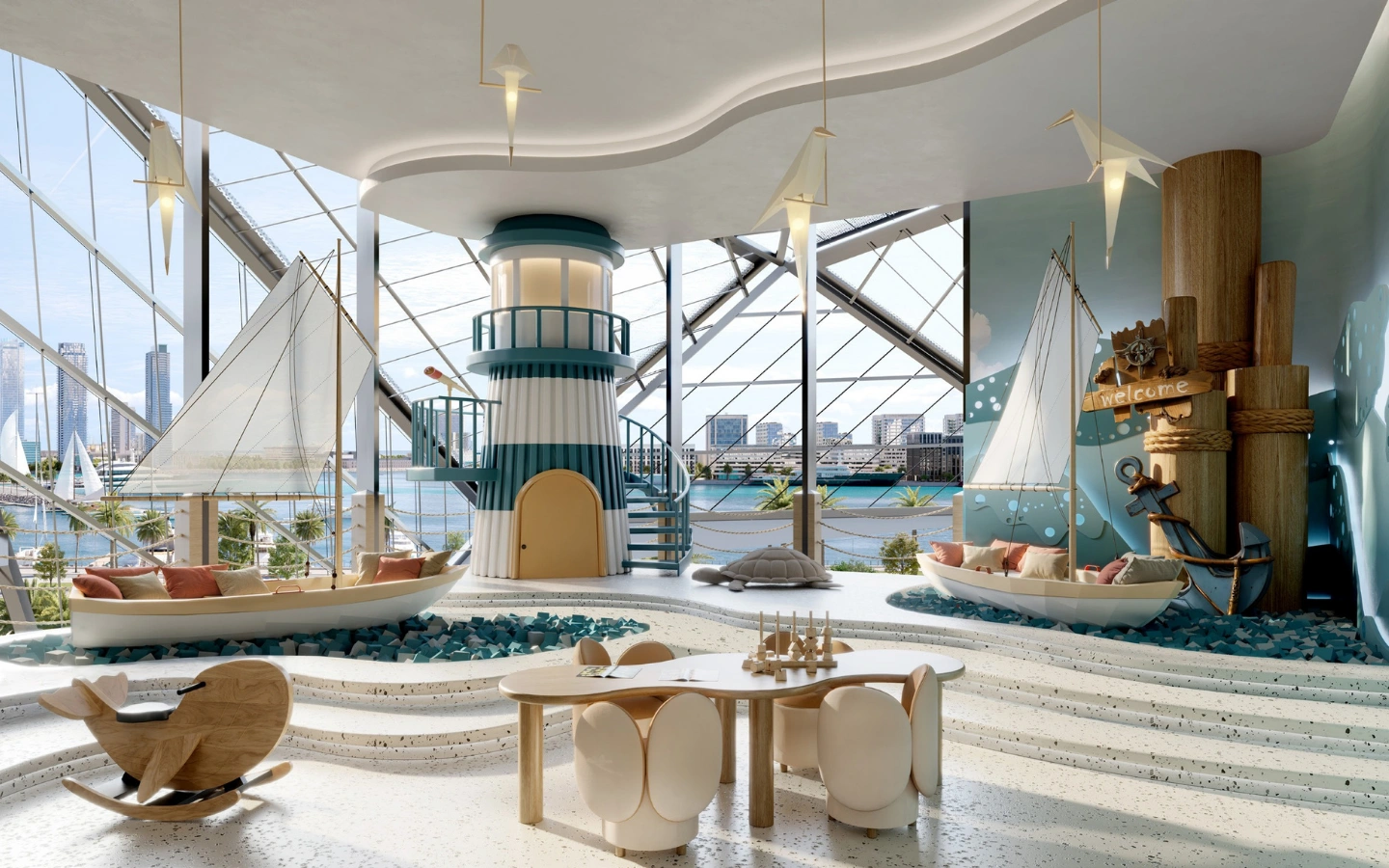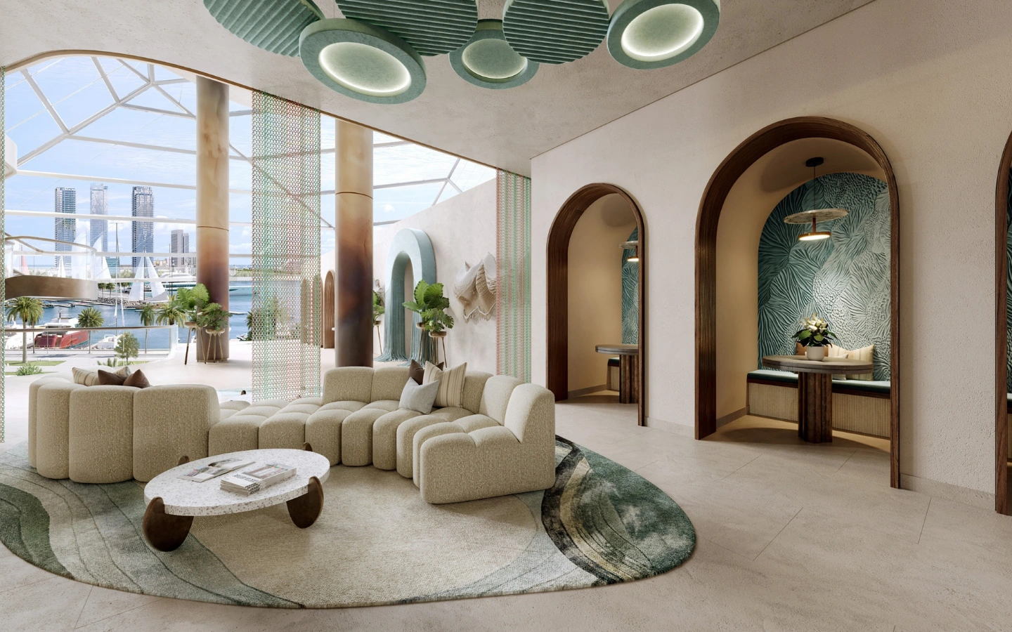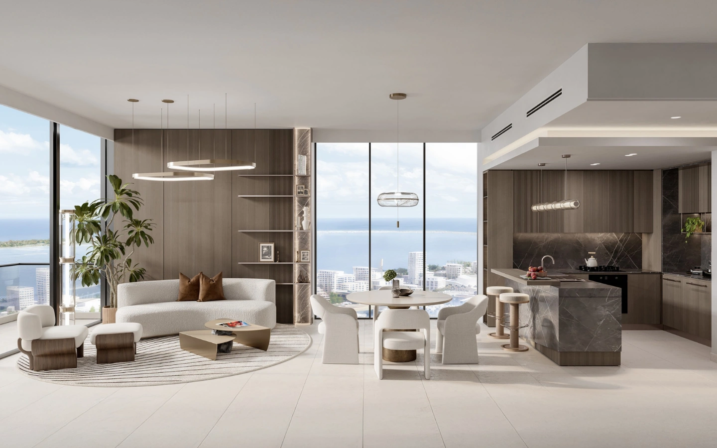 A lakáskínálat a stúdiólakásoktól egészen a limitált számú, tágas, négyhálószobás duplex penthouse rezidenciákig terjed. A belső terek a tenger és a part természetes ritmusából merítenek inspirációt: világos anyaghasználat, funkcionális elrendezések és nagyvonalú kültéri teraszok jellemzik őket. Az átfogó kényelmi kínálat magában foglalja az úszómedencéket, wellness- és spa részleget, fitnesz- és jógastúdiókat, co-working tereket, családi és gyermekzónákat, szórakoztató egységeket, valamint gondosan válogatott üzleteket.