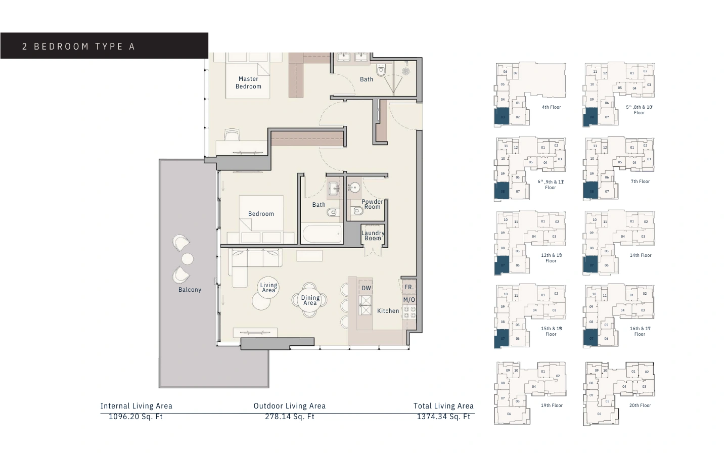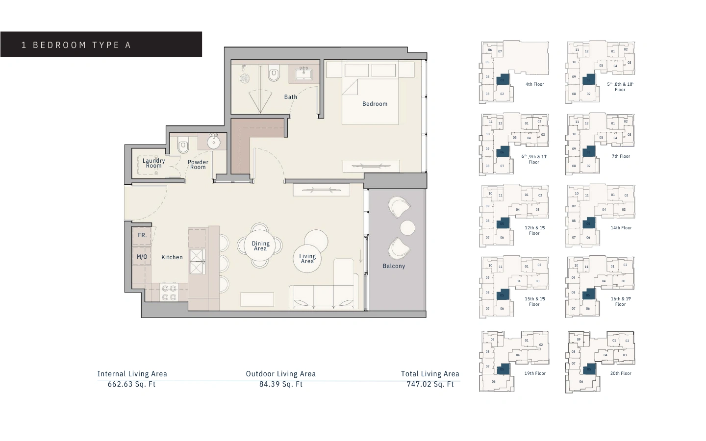 A The Crestmark változatos lakáskínálatot nyújt, a hatékony stúdiólakásoktól egészen a limitált számú, három- és négyhálószobás penthouse rezidenciákig. A belső terek lágy, természetes színvilággal, meleg fa felületekkel és integrált okosotthon-megoldásokkal készülnek, biztosítva a kényelmet és az ingatlan hosszú távú értékét. A projekt egyik legnagyobb erőssége az átfogó életstílus-kínálat: infinity medencék, wellness- és fitneszstúdiók, jóga- és zen szobák, lakói lounge terek, gyermekjátszó zónák, szórakoztatóterek, valamint közvetlen kijárat a vízparti sétányra.