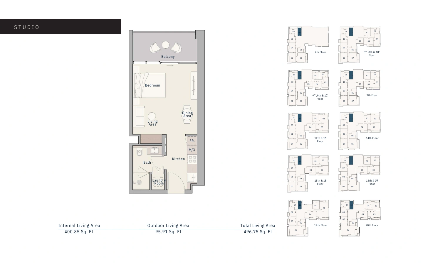 A Crestmark stúdiólakásait a könnyed, modern városi élethez tervezték, okosan kialakított elrendezéssel és kifinomult részletmegoldásokkal. A nyitott nappali tér természetesen kapcsolódik a kortárs konyhához, míg a privát erkély tovább bővíti az életteret. Ideális választás fiatal szakemberek és befektetők számára, hatékony helykihasználással és erős bérleti vonzerővel.