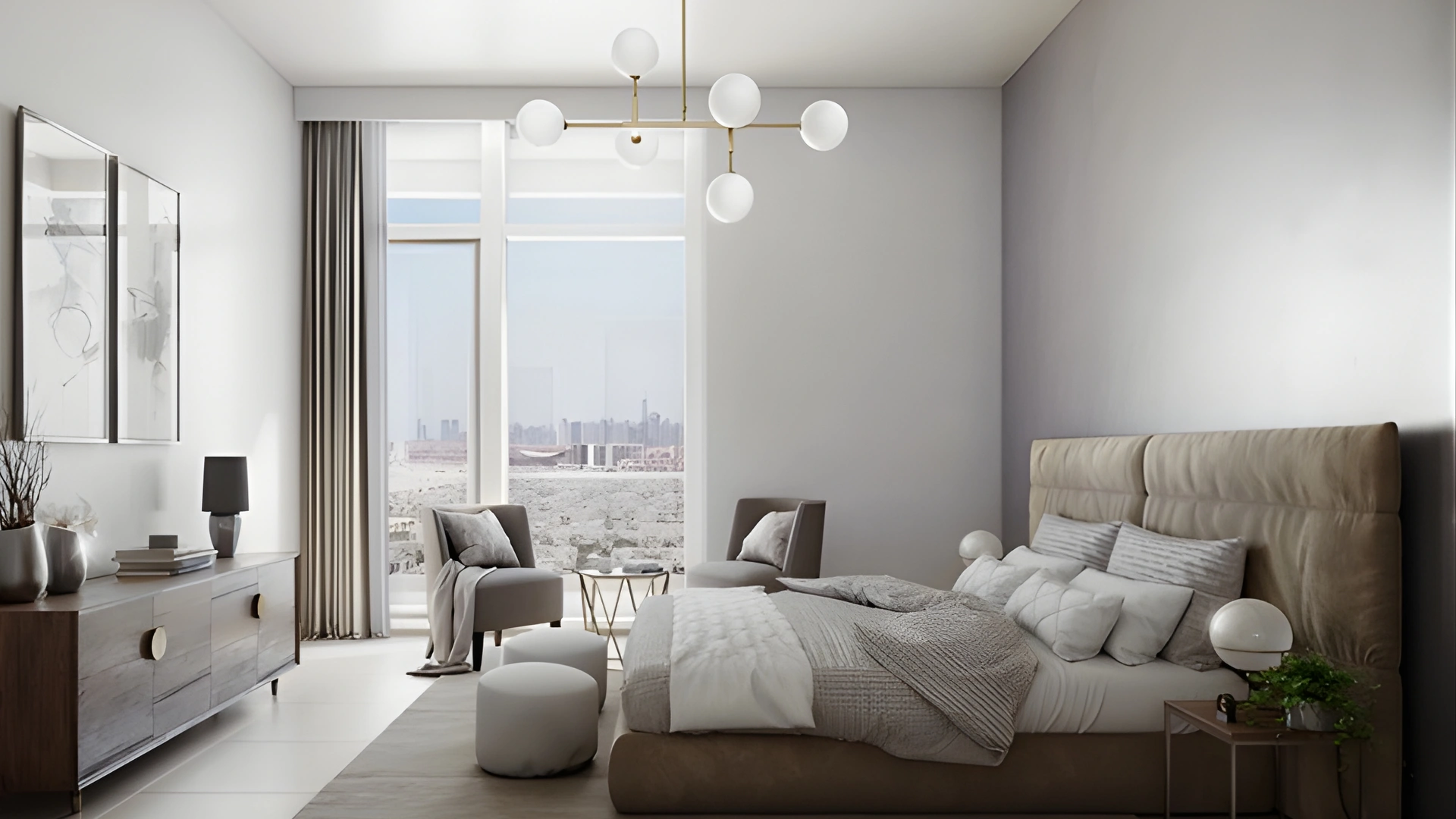 Ideal for couples or individuals seeking extra privacy, the one-bedroom residences offer a separate bedroom, a spacious living area, and a well-appointed kitchen. These homes balance comfort and practicality, often including balconies with city views, making them a popular choice for both living and investment.