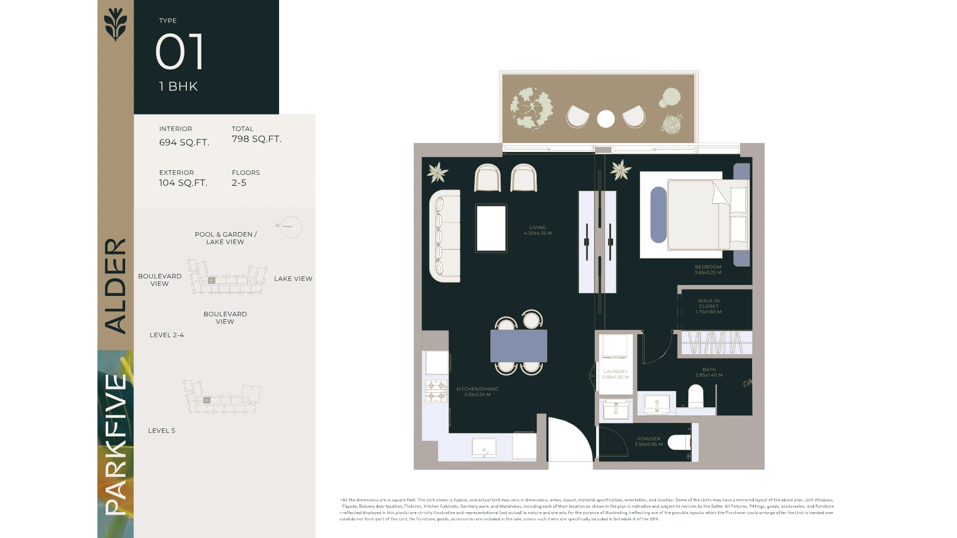 The 1-bedroom residences at Alder at Parkfive are designed for modern urban living, featuring efficient layouts that maximize space and natural light. With generous balconies offering pool, garden, or lake views, well-appointed kitchens, and stylish bathrooms, these apartments are perfect for professionals and couples seeking a blend of comfort, style, and connectivity in a vibrant community.
