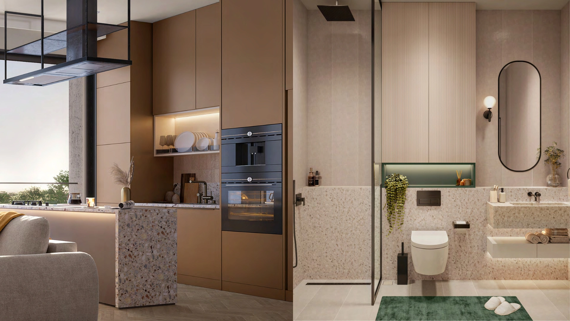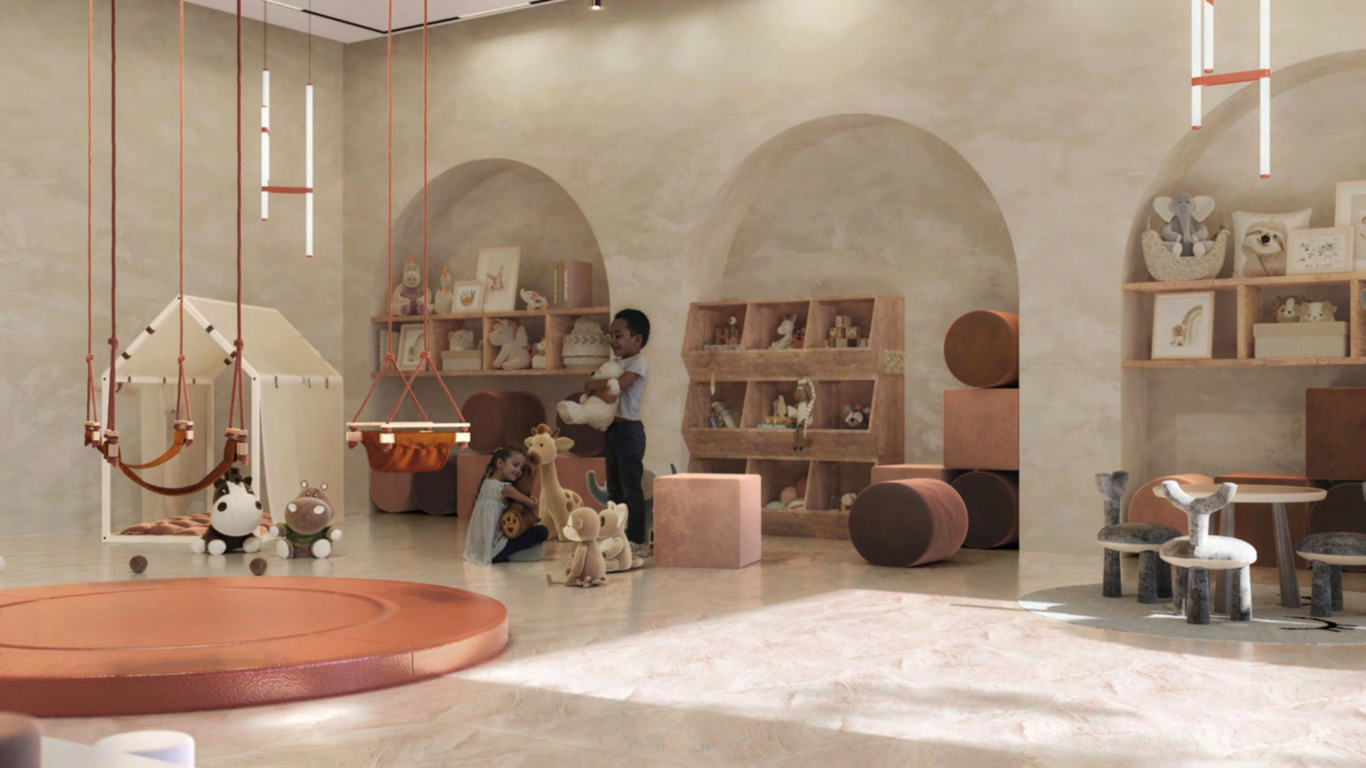 The development redefines luxury community living with over 75 world-class amenities spread across three distinct levels—the podium, fifth floor, and rooftop. Residents have access to multiple swimming pools, including an adult oasis and infinity-edge plunge pools, state-of-the-art gyms, a modern cinema, co-working spaces, BBQ areas, and dedicated kids’ clubs and play zones. The design philosophy centers around ‘sikkas’—traditional Arabian pedestrian pathways that weave through lush landscapes, fostering community interaction and a profound connection with nature.
