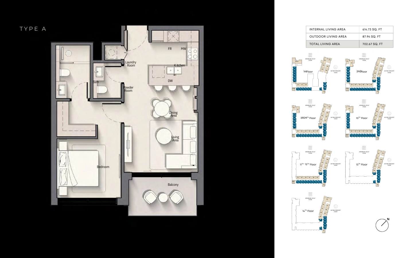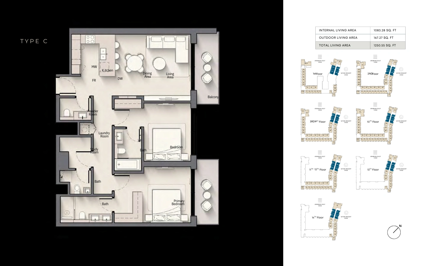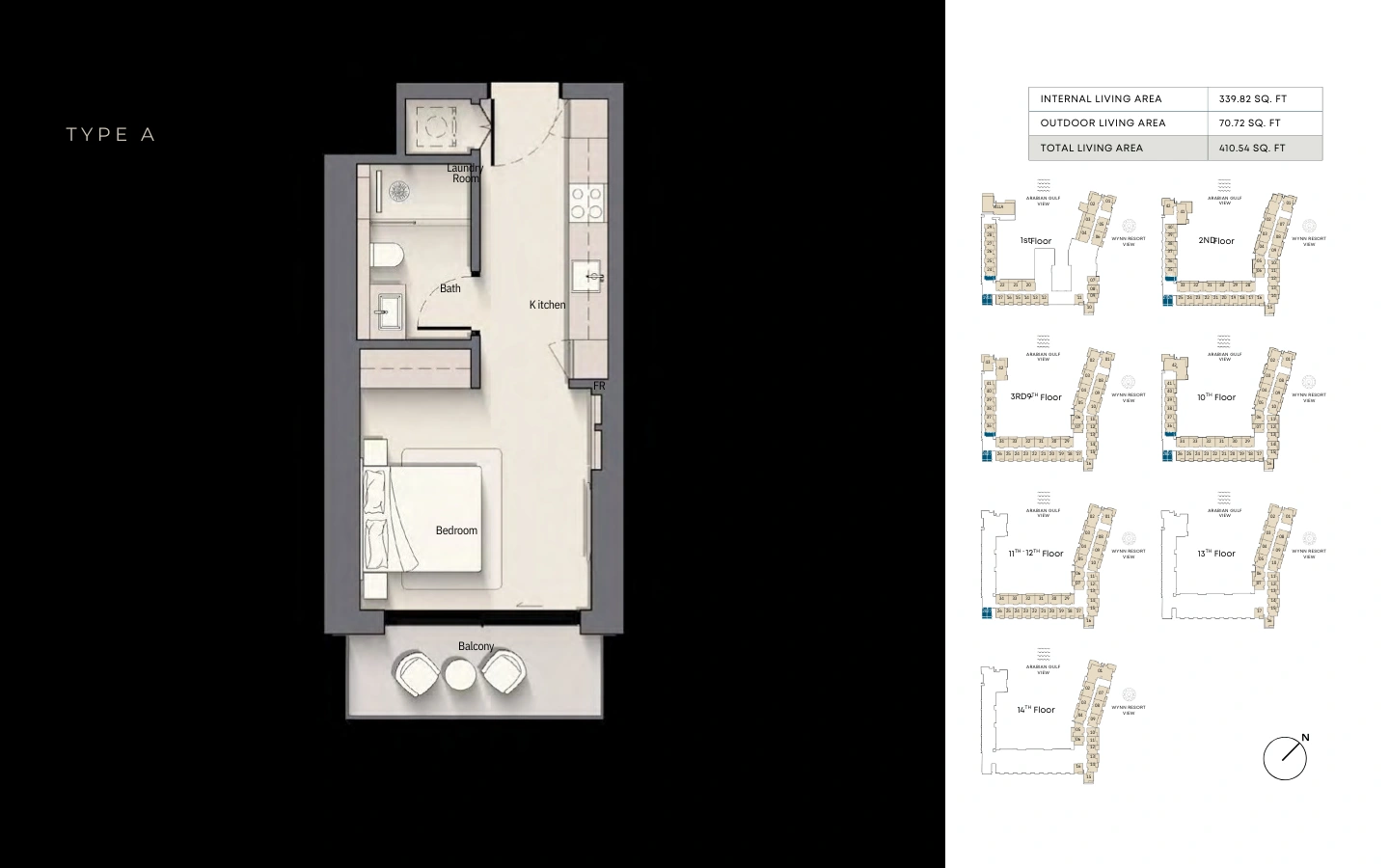 Thoughtfully designed studios at Playa Del Sol offer a refined balance of comfort and efficiency. Open-plan living areas flow seamlessly into modern kitchens, while private balconies frame calming views of the Arabian Gulf or Wynn Resort. Ideal for investors and lifestyle buyers alike, these residences deliver coastal elegance in a compact, highly functional layout.