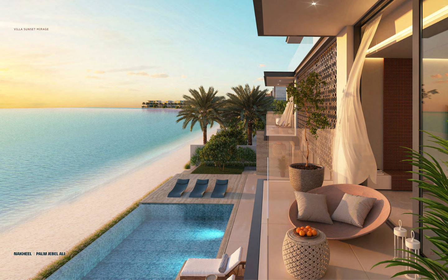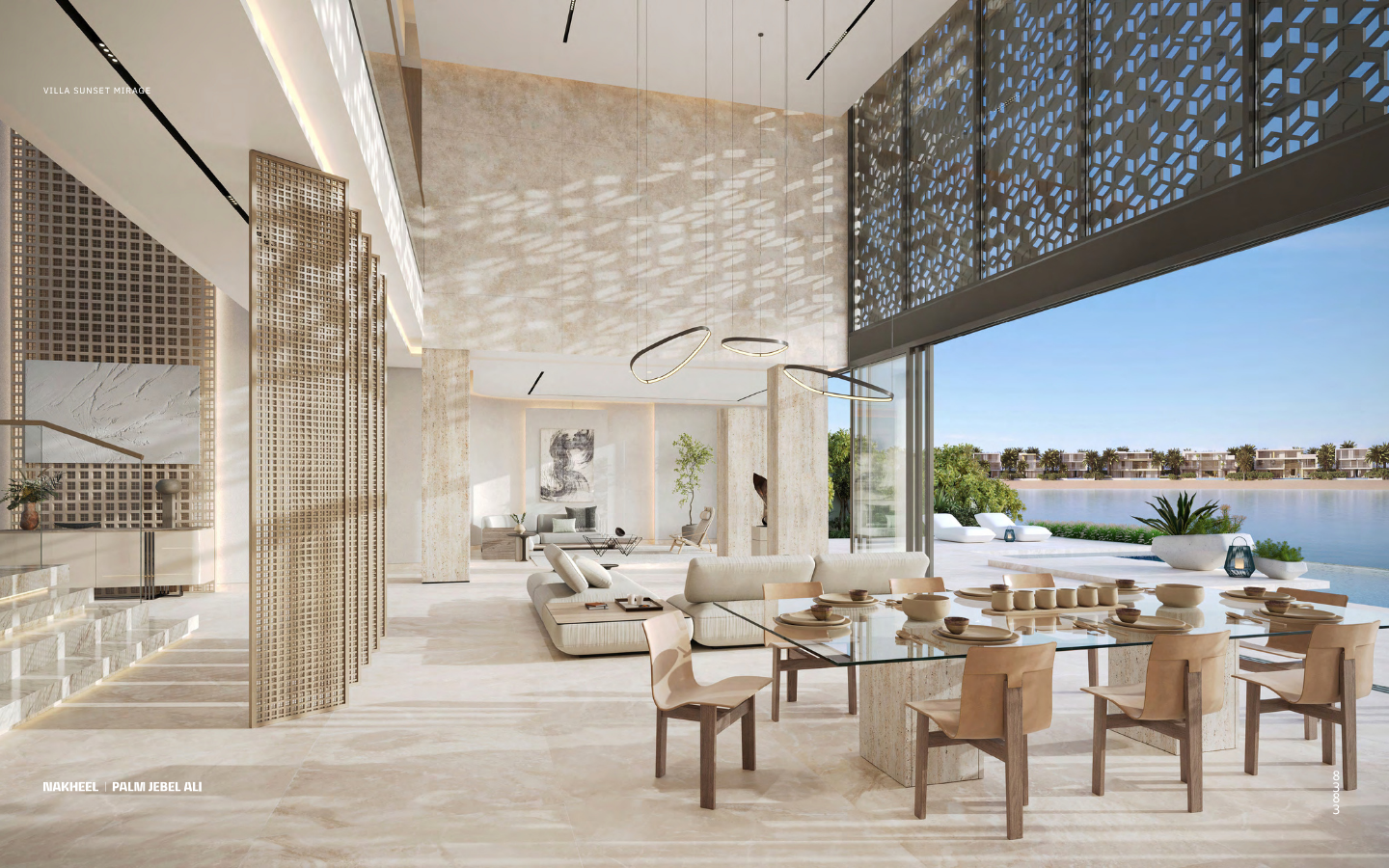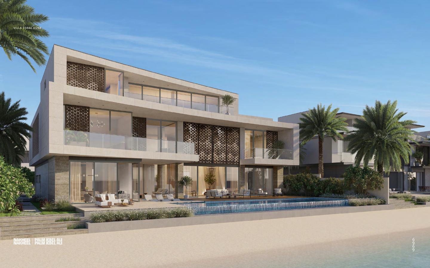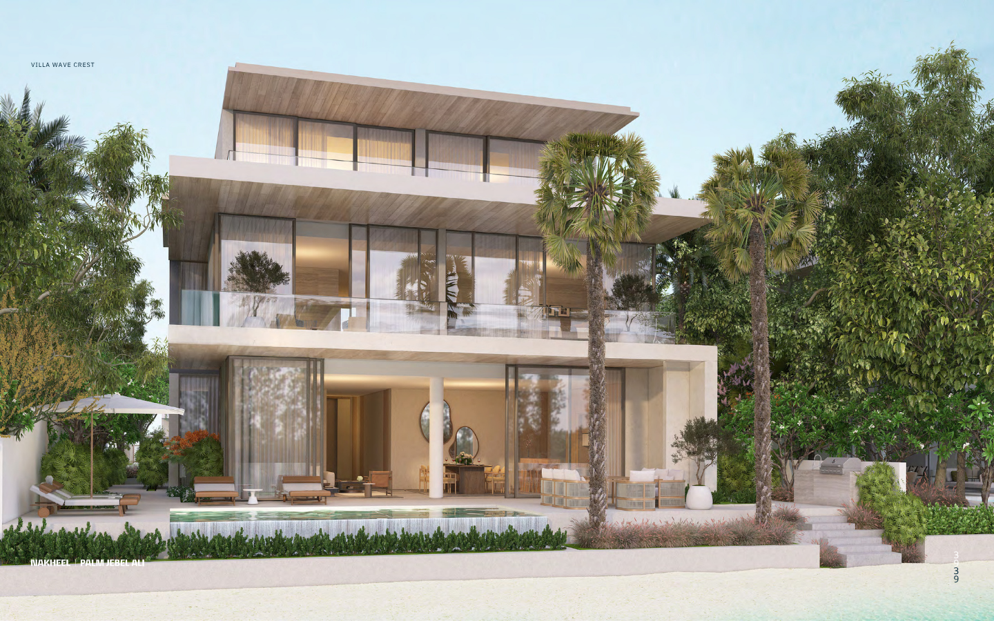 The Beach Collection on Palm Jebel Ali reimagines the essence of seaside luxury, where refined architecture meets the rhythm of the waves. Crafted by renowned architects such as Naga and Loci, each 5- and 6-bedroom villa rises along pristine shores, capturing panoramic views of the Arabian Gulf. With seamless indoor-outdoor flow, private rooftop lounges, and expansive terraces, these homes embody the spirit of calm sophistication.