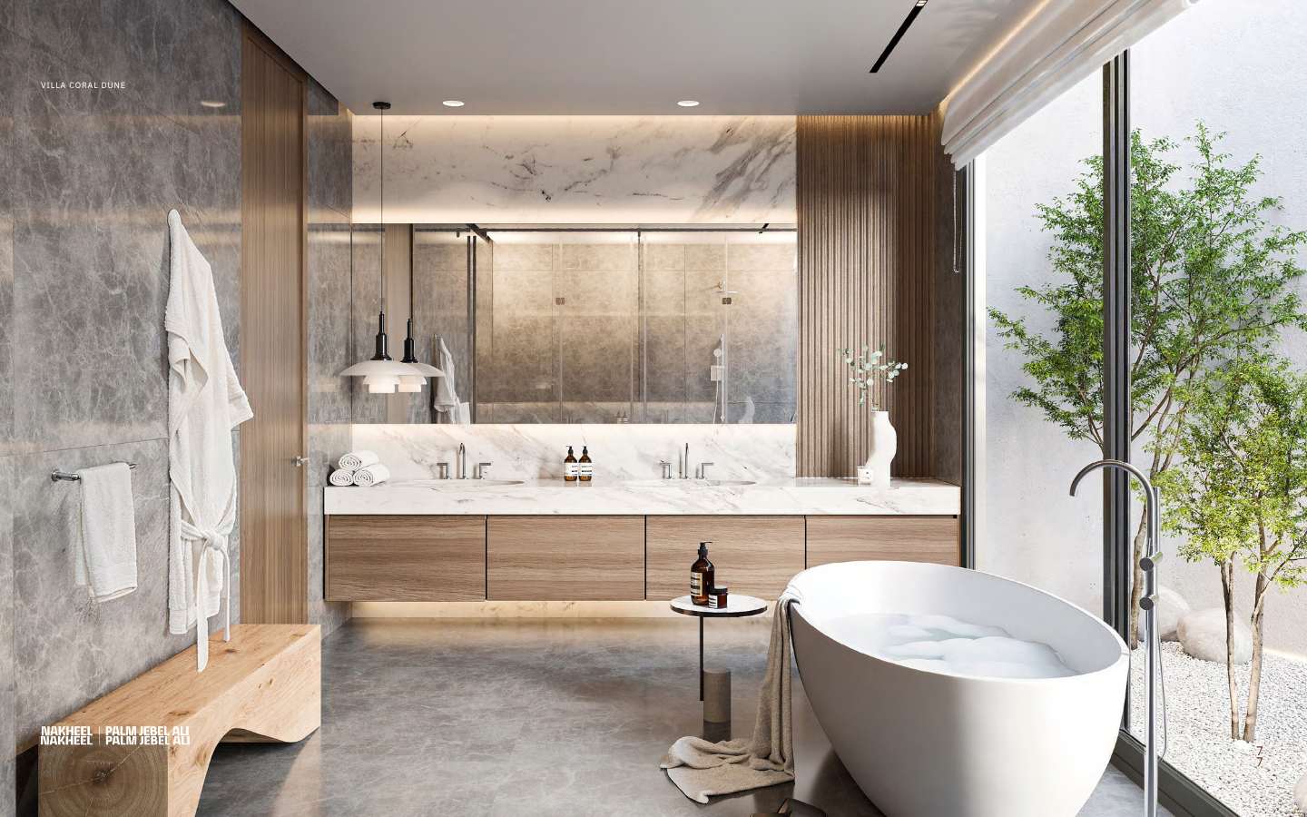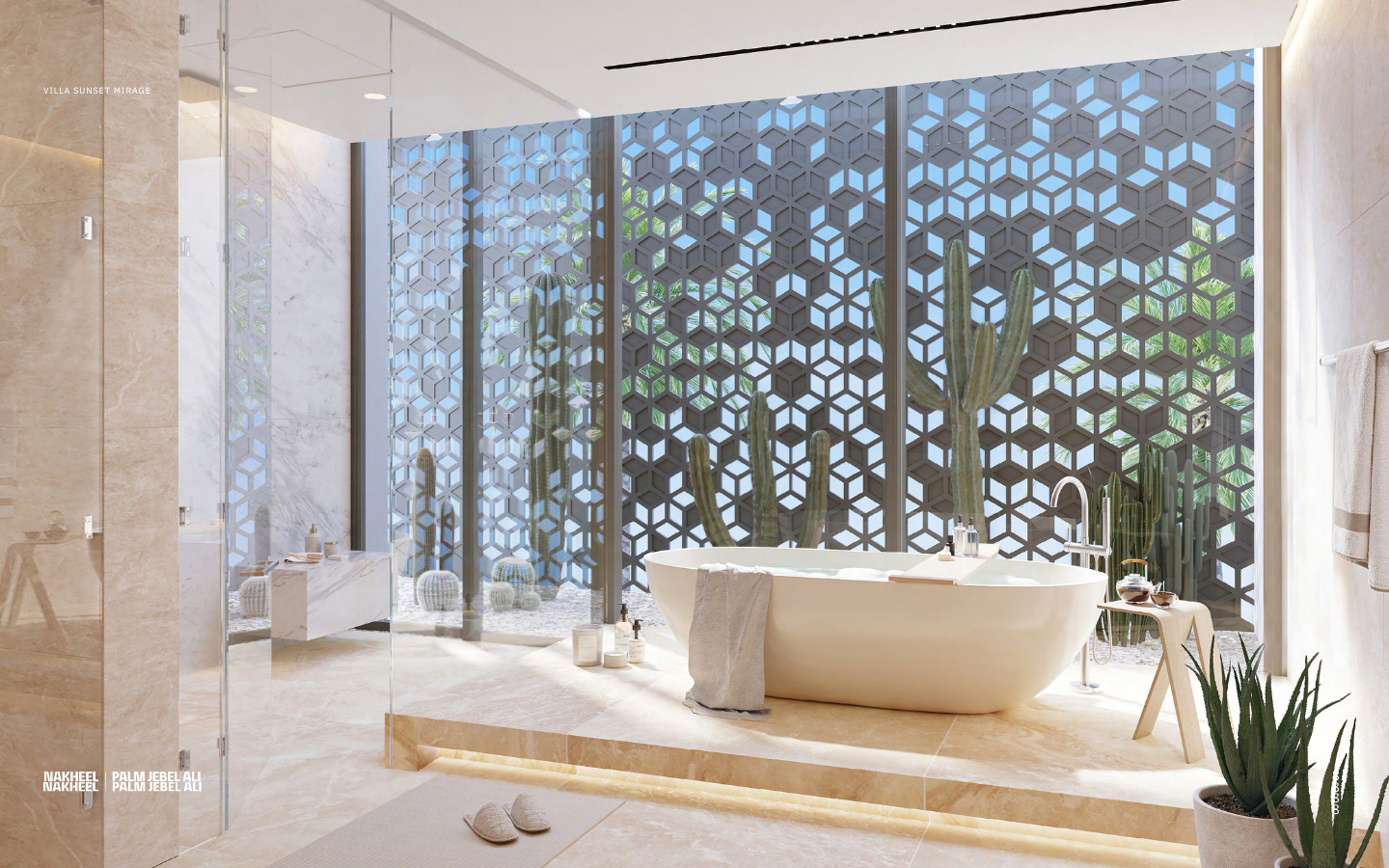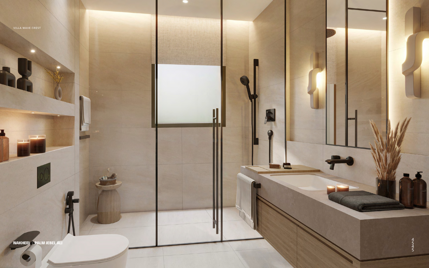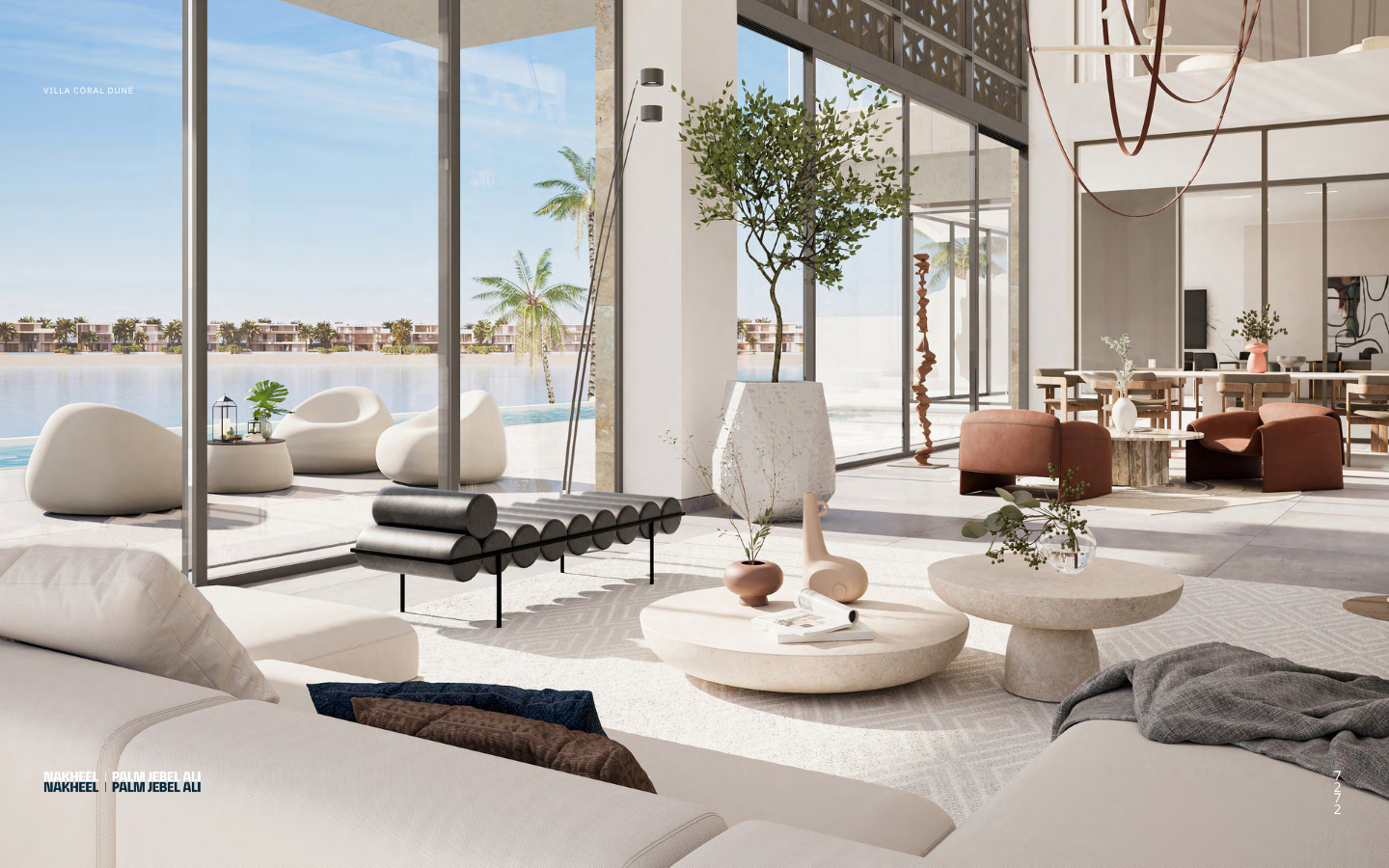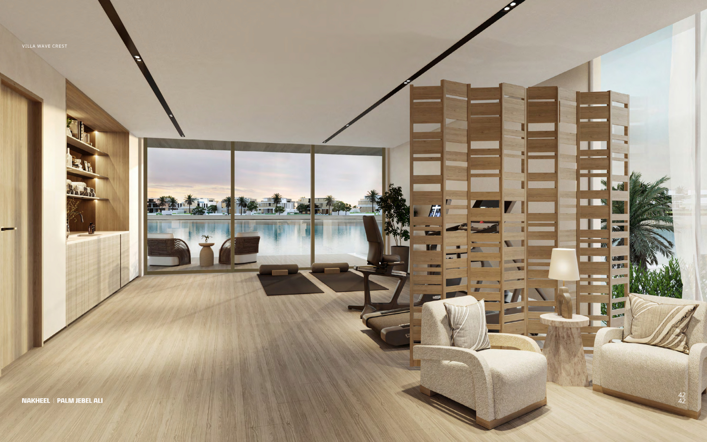 The Beach Collection on Palm Jebel Ali reimagines the essence of seaside luxury, where refined architecture meets the rhythm of the waves. Crafted by renowned architects such as Naga and Loci, each 5- and 6-bedroom villa rises along pristine shores, capturing panoramic views of the Arabian Gulf. With seamless indoor-outdoor flow, private rooftop lounges, and expansive terraces, these homes embody the spirit of calm sophistication.