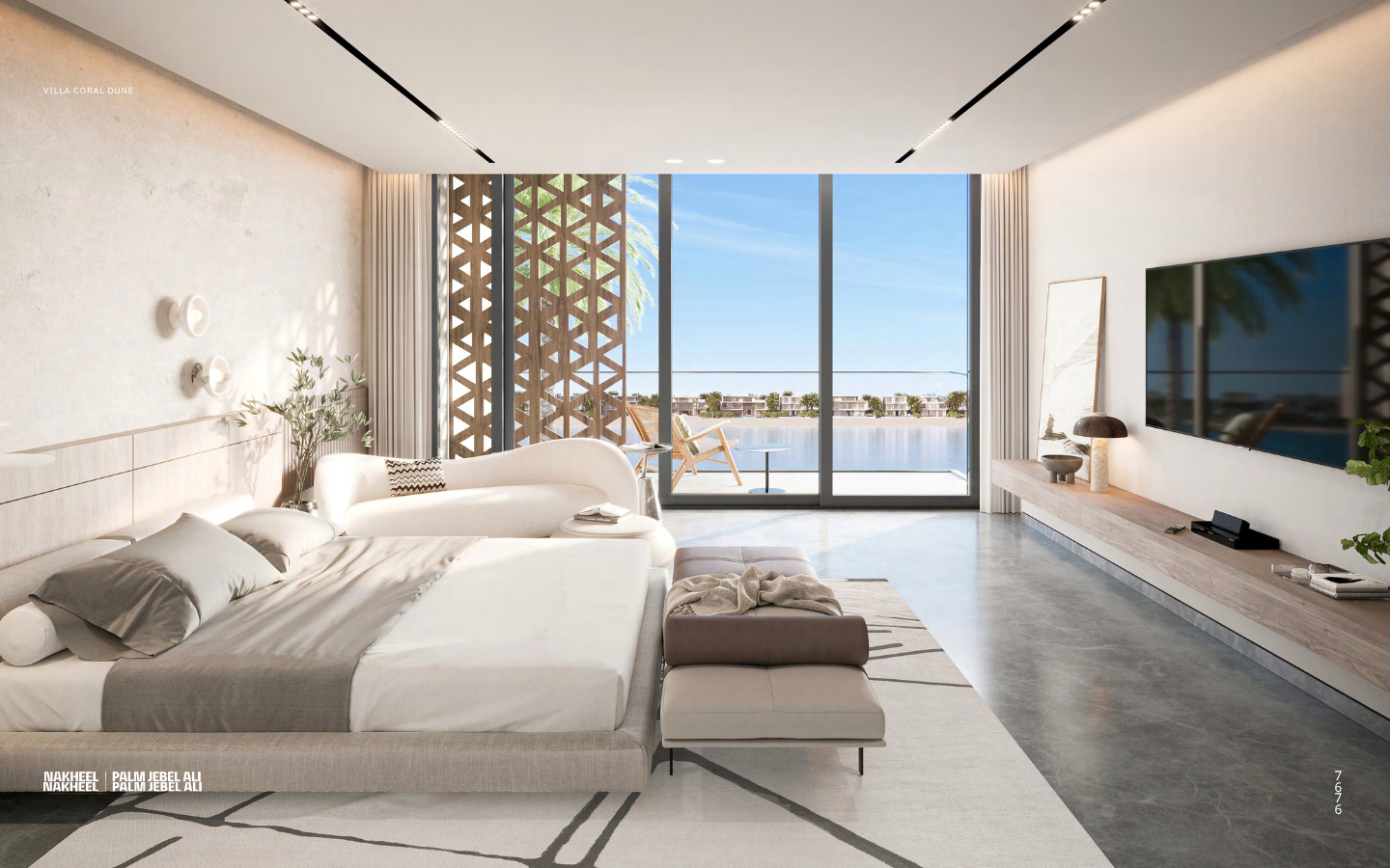 Set within Dubai’s most ambitious coastal development, Palm Jebel Ali offers unmatched connectivity, world-class amenities, and a future-ready infrastructure. The Beach Collection’s villas—like Cyan Sky and Cobalt—reflect the balance of form and function: contemporary design, open light-filled spaces, and direct access to the beach.