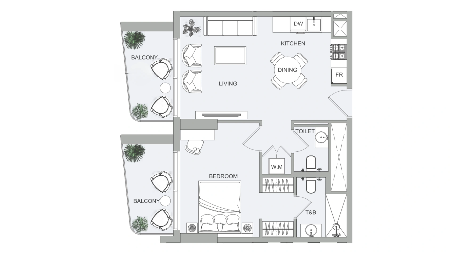 Perfectly balancing privacy and open living, the 1-bedroom layouts offer a spacious living and dining area, modern kitchen, and private balcony for everyday relaxation. The bedroom includes built-in storage and direct access to stylish bathrooms. With smart home features and a refined design, these homes provide a practical yet premium lifestyle.