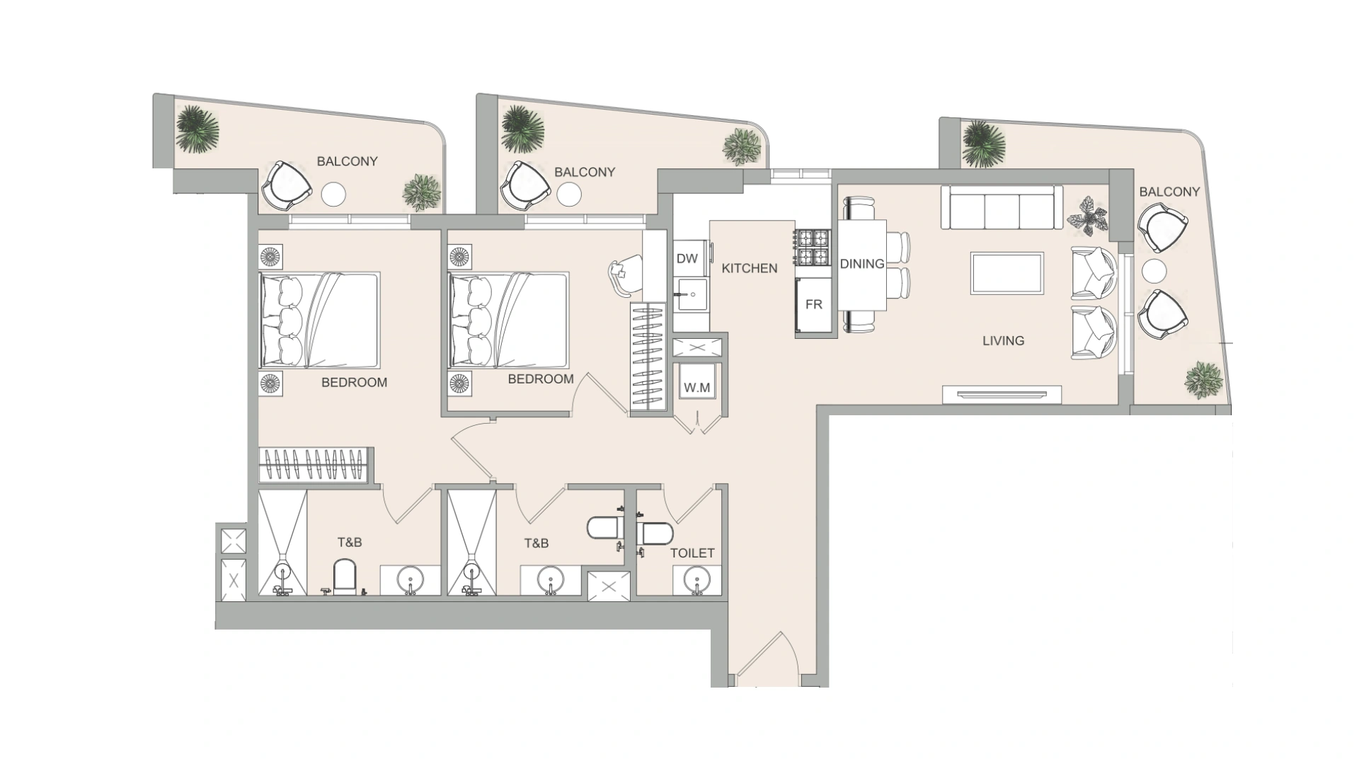 Crafted for families or those who value space, the 2-bedroom residences combine generous proportions with smart functionality. Expansive living areas flow into multiple balconies, while the master suite features a private en-suite bathroom and ample storage. A second bedroom and additional bathroom make it an ideal choice for families or investors seeking long-term value.